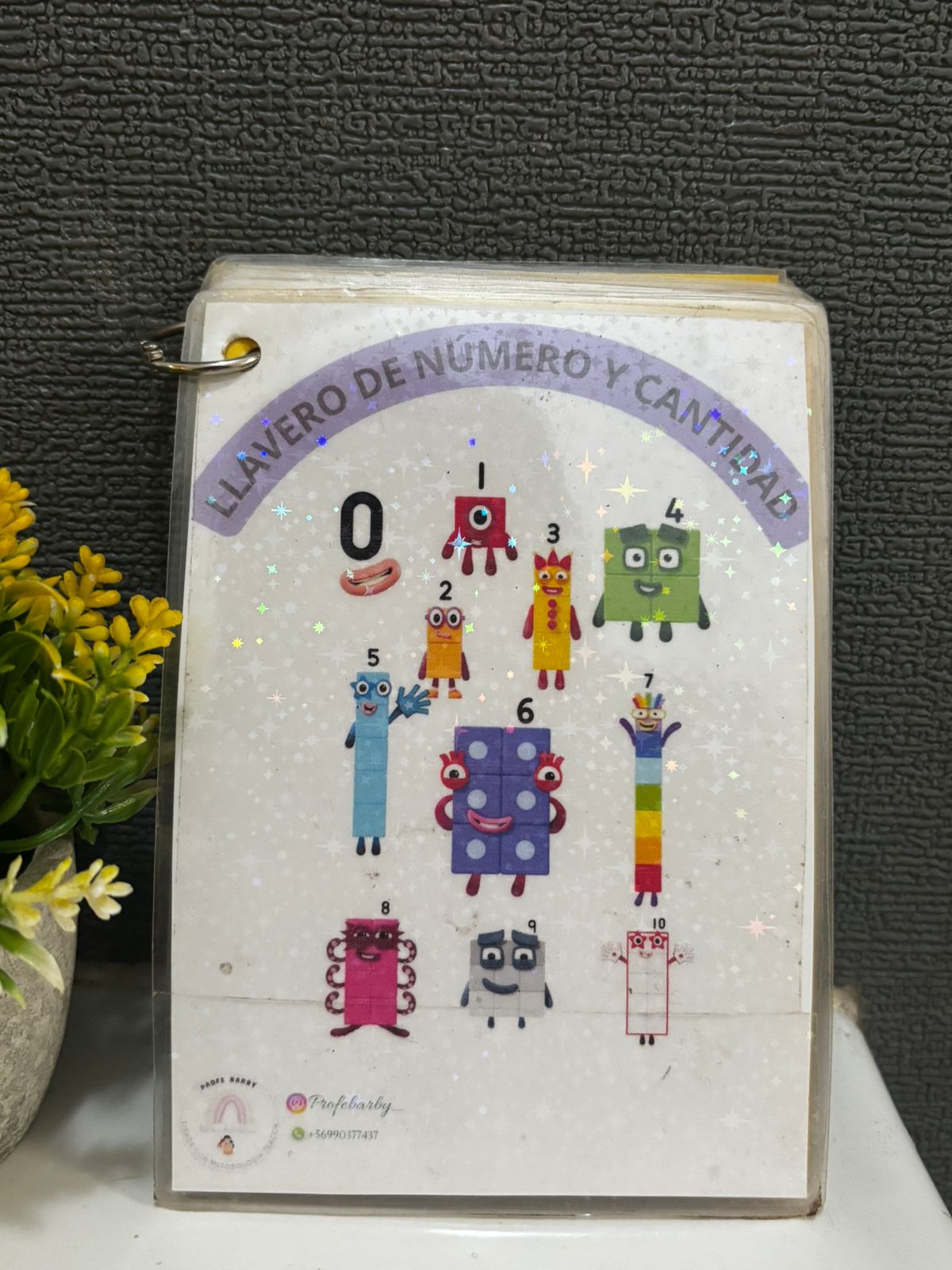 Llavero, con números de 1-20 con espacios para asociar el número a su cantidad correspondiente